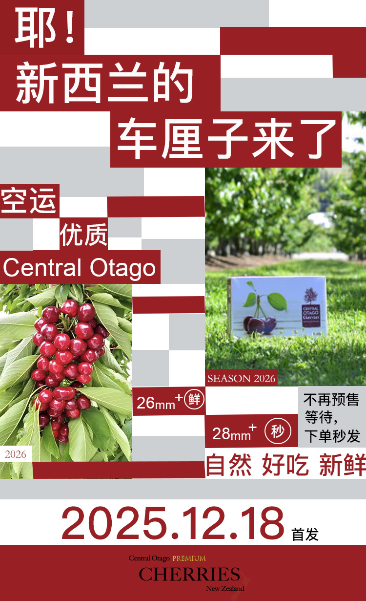 厘子必须经过严格筛选,但Central Otago车厘子含糖量比较高,有个别果子在运输过程中会出现一定的脱水和底部开裂, |